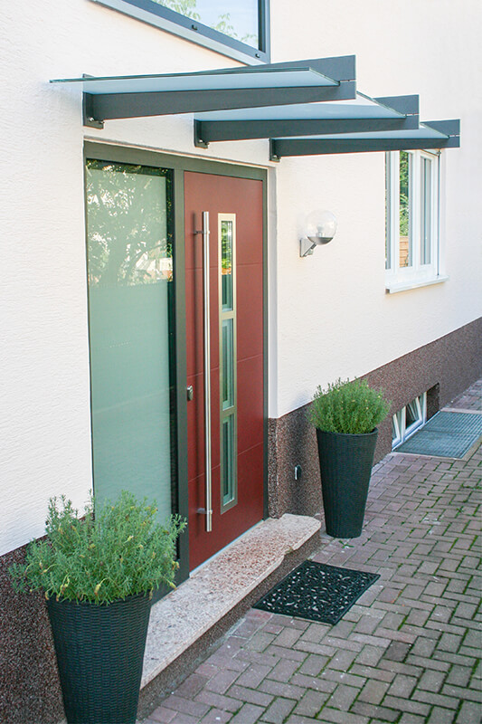 Um die Attraktivität Ihres Hauseinganges zu erhöhen, bieten wir Ihnen Lösungen nach Maß. Die Vordach-Systeme von al bohn überzeugen durch eine formschöne und unaufdringliche Architektur. Die Typenvielfalt ermöglicht die harmonische Abstimmung auf neue oder bereits bestehende Fassaden und unterstreicht den individuellen Charakter Ihres Hauses.