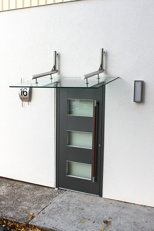Um die Attraktivität Ihres Hauseinganges zu erhöhen, bieten wir Ihnen Lösungen nach Maß. Die Vordach-Systeme von al bohn überzeugen durch eine formschöne und unaufdringliche Architektur. Die Typenvielfalt ermöglicht die harmonische Abstimmung auf neue oder bereits bestehende Fassaden und unterstreicht den individuellen Charakter Ihres Hauses.