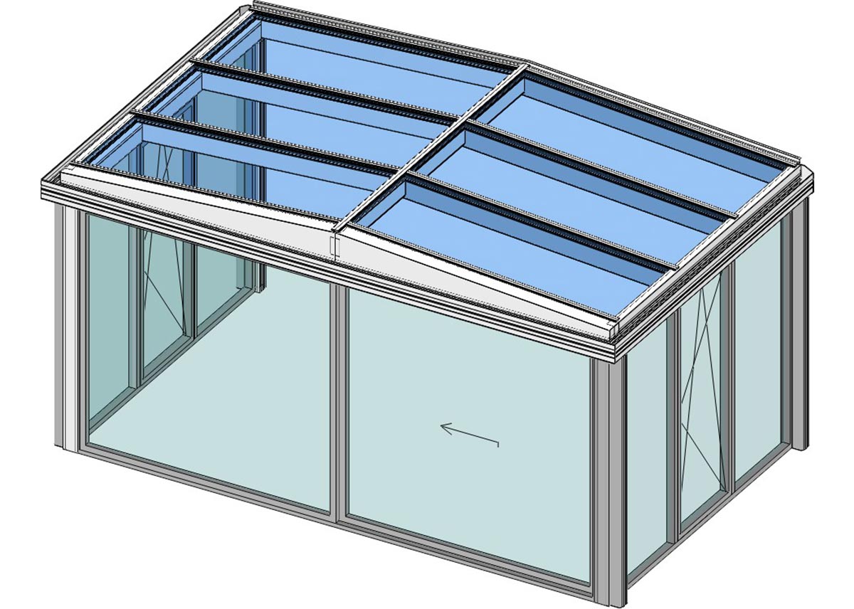 Die Richtlinien der Energieeinsparverordnung (EnEV) und des Gebäudeenergiegesetzes (GEG) sind heutzutage Maßstab für moderne und energetisch einwandfreie Produkte. Durch den Einsatz von Dreifachglas und energetisch hochwertigen Profilen erreicht das Schrägdach-System
